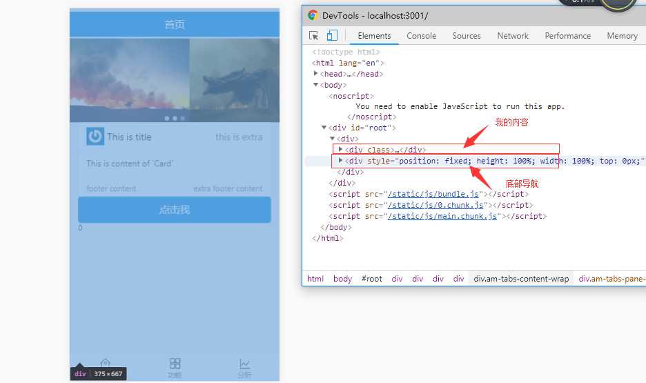 最近空余时间比较多,自己想学习react跟移动端的东西,就选用了antd-mobile库,框架搭好开发过程中遇到个问题,里面绑定的点击事件无效,不仅是antd自带的按钮无效,原生button点击也没反应,网上找了一大堆没有好的解决方案。在调试过程中发现