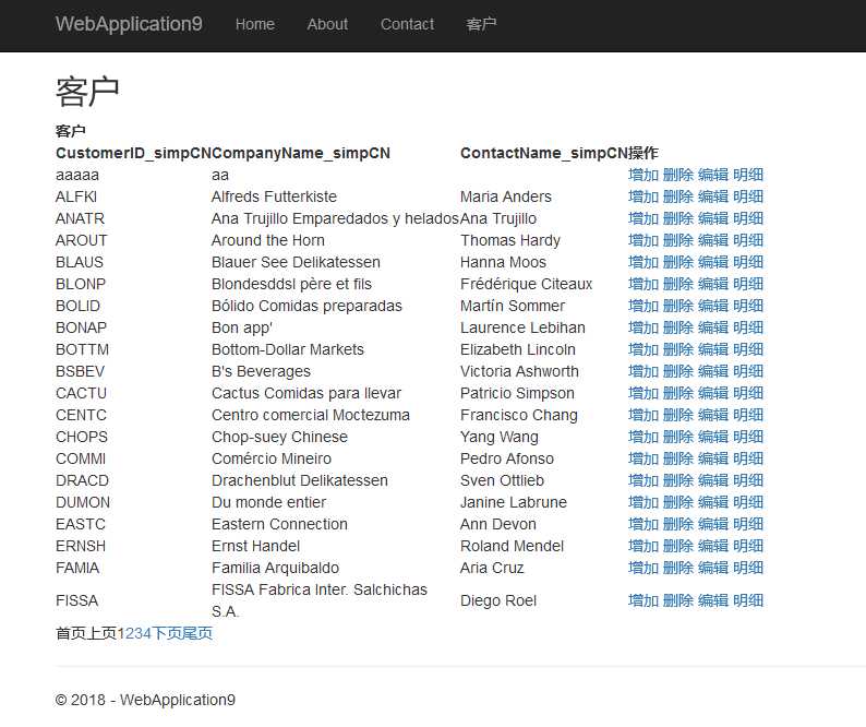 为演示代码,我在MySql中增加了`customers` 个,其结构与数据与Northwind数据库Customers表相同。