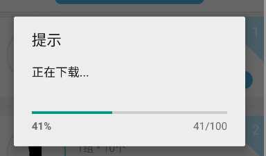 private void showDownloadProgressDialog(Context context) { ProgressDialog progressDialog = new ProgressDialog(context); progressDialog.setTitle("提示"); progressDialog.setMessage("正在下载..."); progressDialog.setIndeterminate(false); progressDialog.setMax(100); progressDialog.setCancelable(false); //设置不可点击界面之外的区域让对话框小时 progressDialog.setProgressStyle(ProgressDialog.STYLE_HORIZONTAL); //进度条类型 progressDialog.show(); String downloadUrl = "http://ac-edNxPKqQ.clouddn.com/800exxxxxxx68ebcefda.apk"; //这里写你的apk url地址 new DownloadAPK(progressDialog).execute(downloadUrl); }