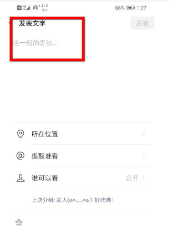 - 点击右上角的"发表"按钮,你的朋友圈就发送成功了。