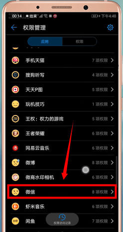 接着找到并点击【微信】,点击【设置单项权限】