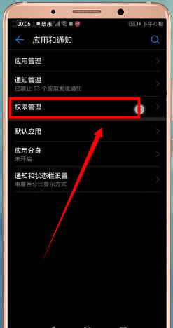 然后点击【应用和通知】-【权限管理】