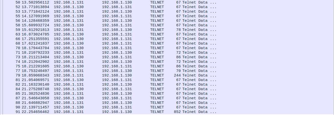 下图为客户端Wireshark抓取的Telnet流量包截图截图: