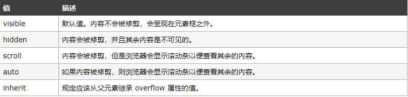 overflow 属性规定当内容溢出元素框(盒子模型)时发生的事情。