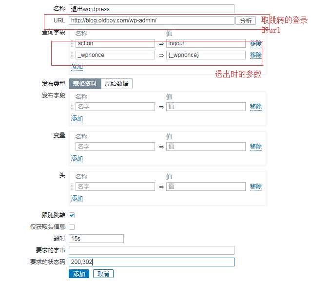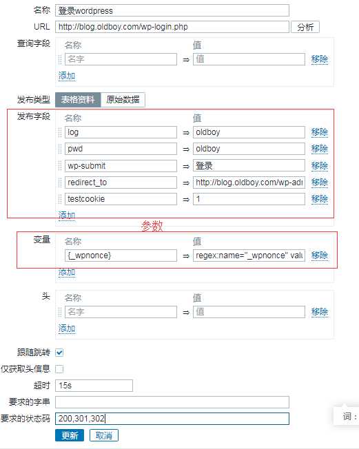 需要定义变量:{_wpnonce} regex:name="_wpnonce" value="([0-9a-z]{10})"
