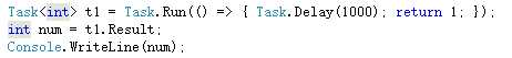 但是需要注意的是,慎用.Result或者Wait来获取Task的返回值,除非你明确地知道Task的代码逻辑。我们来看下面一段代码