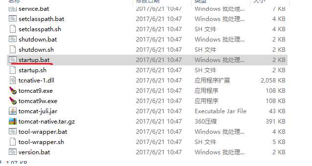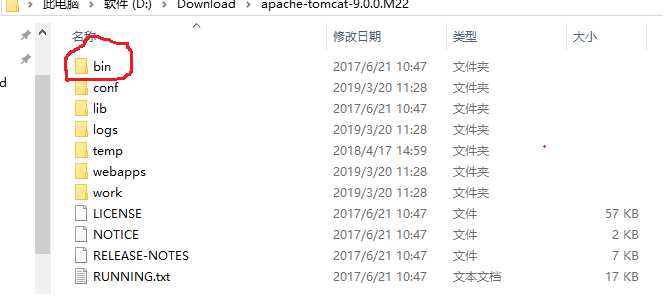 回到之前的apache-tomcat-8.0.44或apache-tomcat-9.0.0.M22。打开里面的bin文件