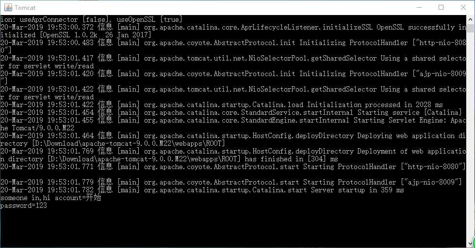 System.out.println("someone in,hi account="+account);