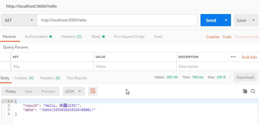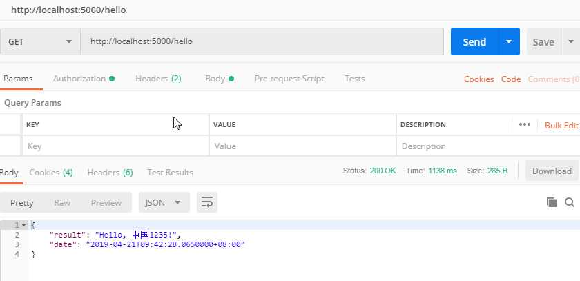 运行程序,打开Postman查看返回结果