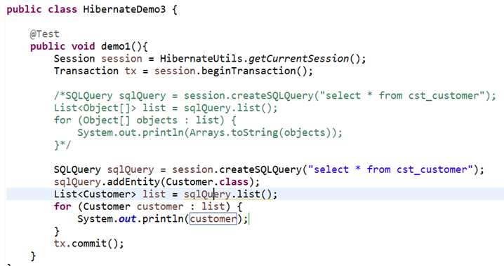 List<Customer> list = query.list( ) ;//得到一个List集合,通过遍历即可