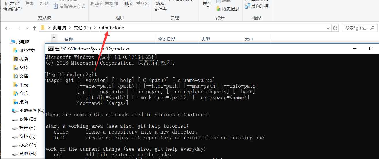 新建一个文件夹,运行cmd,输入git,出现以下内容证明安装成功
