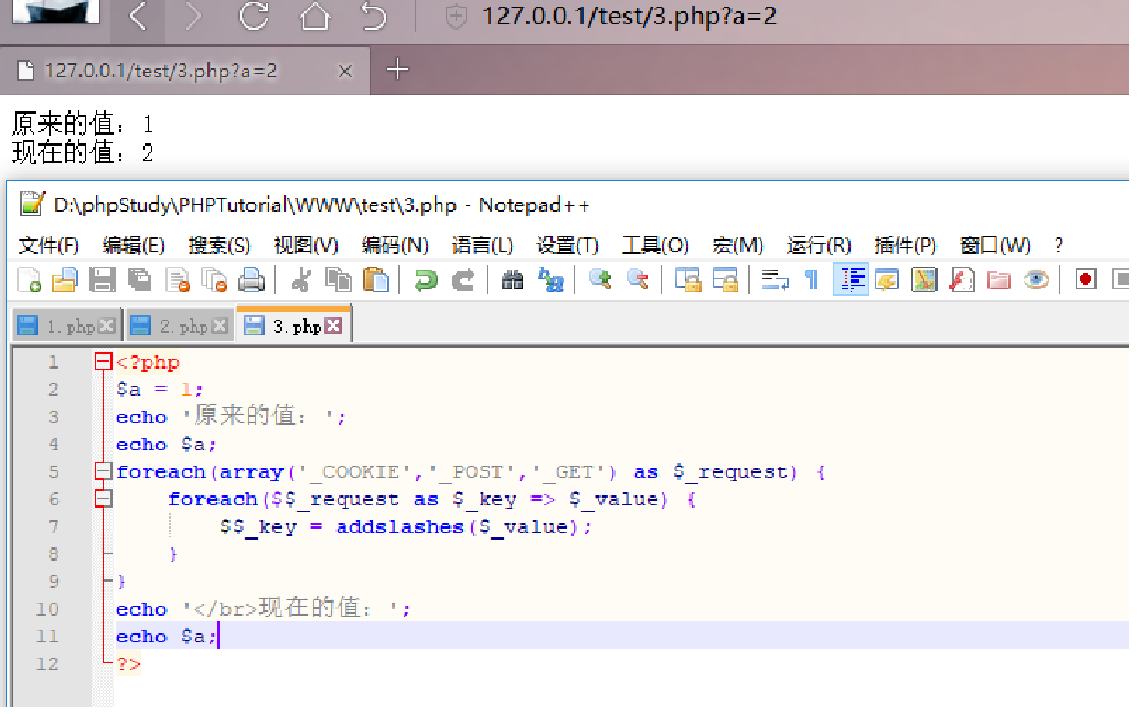 而下面的$$_key则会有$a的意思,结合起来就变成了$a = addslashes($_value)