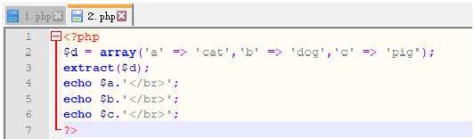 此时数组d中的键名将当做新的变量名来创建一个新的变量,而新的变量的值即为在数组中对应的值。(注意如果之前有声明过同一个变量,那么该变量将被覆盖。如果之后才声明将不会出现变量覆盖的现象)