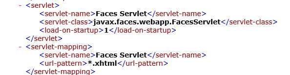 一个servlet元素及其指定FacesServlet的servlet-mapping元素。所有带有.xhtml后缀的文件都将匹配:
