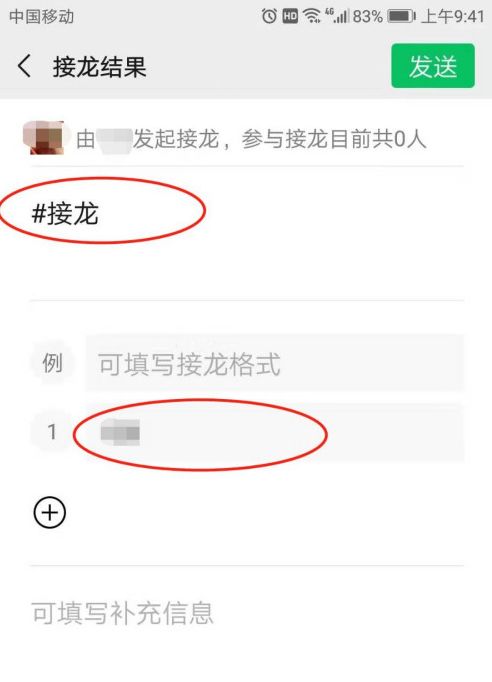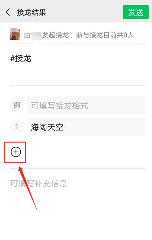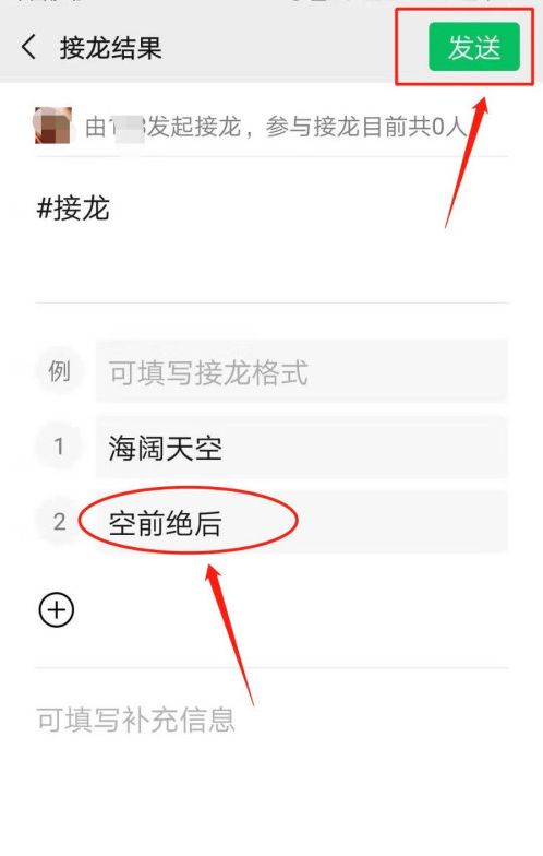 7、接龙信息输入完成,点击右上方【发送】按钮。