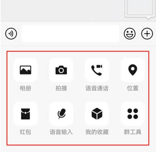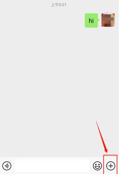 2、进入微信群聊界面后,点击页面右下方加号图标。