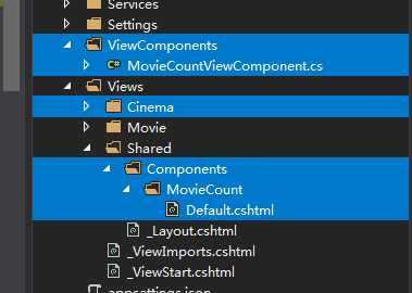 2)在Shared文件夹里创建文件夹Components、MovieCount和Default.cshtml