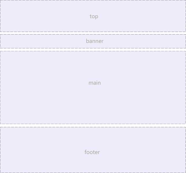 <div class="top"></div> <div class="banner"></div> <div class="main"></div> <div class="footer"></div>