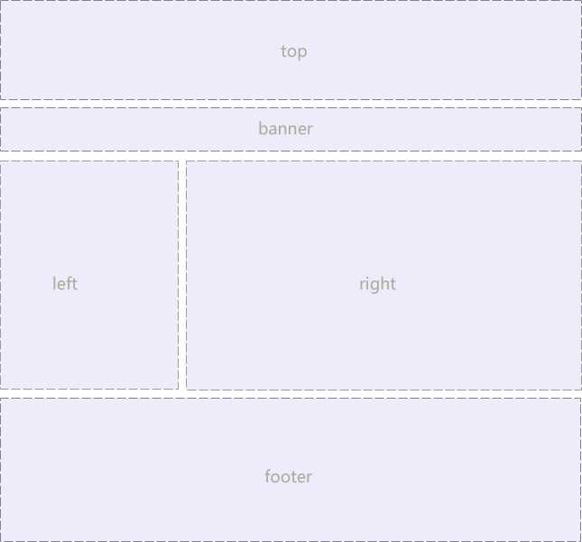 <div class="top"></div> <div class="banner"></div> <div class="main"> <div class="left"></div> <div class="right"></div> </div> <div class="footer"></div>