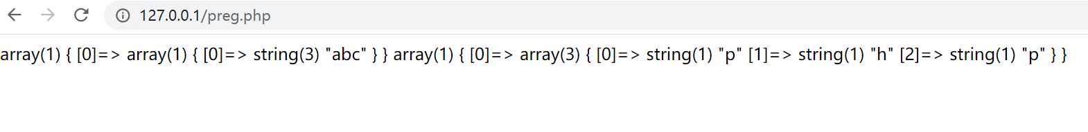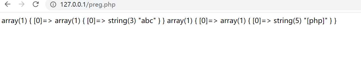 <?php//普通字符作为原子$pattern = '/abc/';$str = 'abcdefghijklmn';preg_match_all($pattern,$str,$res);//以数组形式存储var_dump($res);//会以数组形式显示出来?>