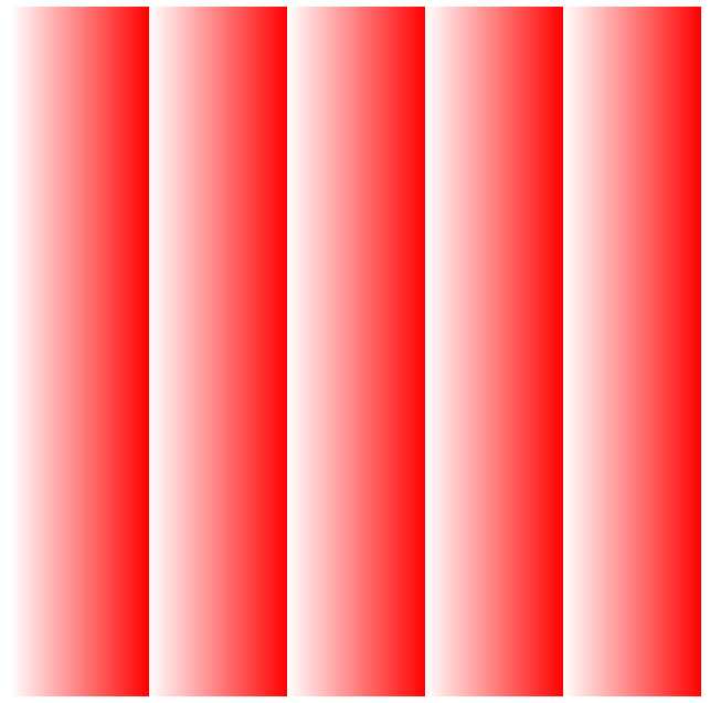 <!DOCTYPE html><html lang="en" manifest="index.manifest"><head><meta charset="UTF-8"><title>Document</title><style> div{ width: 500px; height: 500px; background:-webkit-repeating-linear-gradient(90deg, rgba(255,0,0,0), rgba(255,0,0,1) 20%); background: -moz-repeating-linear-gradient(90deg, rgba(255,0,0,0), rgba(255,0,0,1) 20%); background: -o-repeating-linear-gradient(90deg, rgba(255,0,0,0), rgba(255,0,0,1) 20%); background: repeating-linear-gradient(90deg, rgba(255,0,0,0), rgba(255,0,0,1) 20%); }</style></head><body> <div></div></body></html>