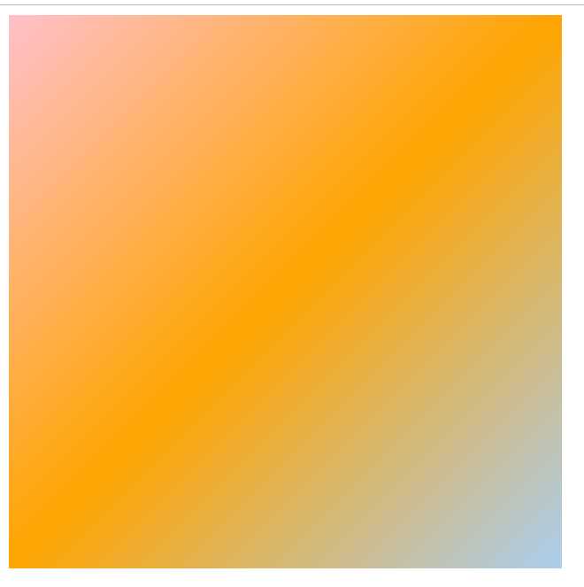 <!DOCTYPE html><html lang="en" manifest="index.manifest"><head><meta charset="UTF-8"><title>Document</title><style> div{ width: 500px; height: 500px; background:-webkit-linear-gradient(pink, orange, #abcdef);/*默认是垂直方向*/ background: -moz-linear-gradient(pink, orange, #abcdef);/*默认是垂直方向*/ background: -o-linear-gradient(pink, orange, #abcdef);/*默认是垂直方向*/ background: linear-gradient(pink, orange, #abcdef);/*默认是垂直方向*/ background:-webkit-linear-gradient(left, pink, orange, #abcdef);/*从左到右*/ background: -moz-linear-gradient(right, pink, orange, #abcdef); background: -o-linear-gradient(right, pink, orange, #abcdef); background: linear-gradient(to right, pink, orange, #abcdef); background:-webkit-linear-gradient(left top, pink, orange, #abcdef);/*从左上到右下*/ background: -moz-linear-gradient(right bottom, pink, orange, #abcdef); background: -o-linear-gradient(right bottom, pink, orange, #abcdef); background: linear-gradient(to right bottom, pink, orange, #abcdef); }</style></head><body> <div></div></body></html>
