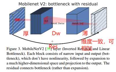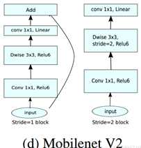 另一方面, 增添了residual connection 的连接,为MobileNet V1中直筒的结构增添了ResNet作用的结构。