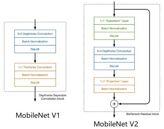整理一下: MobileNet v2 依旧使用depthwise separable convolutions操作,但主体结构变为如下右图的形式: