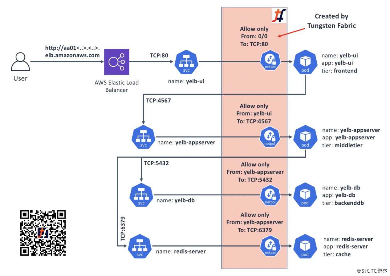 Tungsten Fabric提供了完整的NetworkPolicy支持,无论集成Tungsten Fabric的Kubernetes在哪里运行,是在私有数据中心,还是在公共云中。