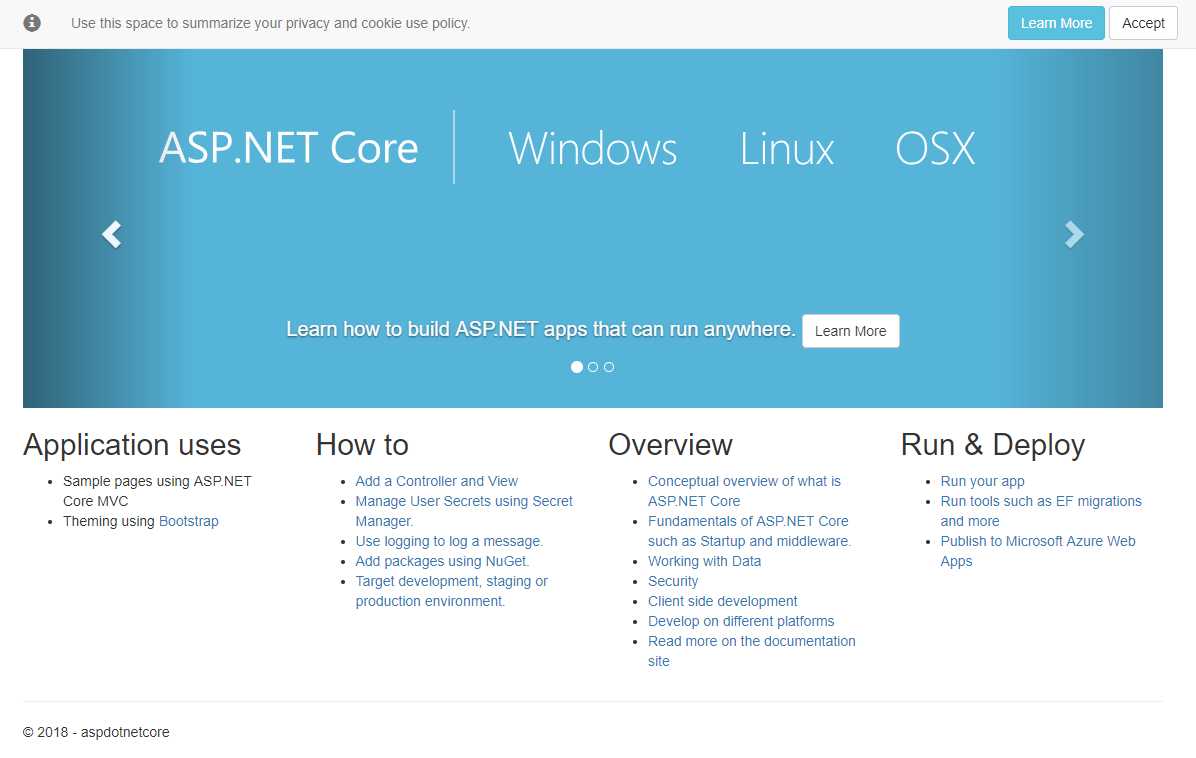 PS D:\jessetalk> mkdir aspdotnetcore 目录: D:\jessetalkMode LastWriteTime Length Name---- ------------- ------ ----d----- 2018-12-09 23:56 aspdotnetcorePS D:\jessetalk> cd .\aspdotnetcorePS D:\jessetalk\aspdotnetcore> dotnet new mvc已成功创建模板“ASP.NET Core Web App (Model-View-Controller)”。此模板包含非 Microsoft 的各方的技术,有关详细信息,请参阅 https://aka.ms/aspnetcore-template-3pn-210。正在处理创建后操作...正在 D:\jessetalk\aspdotnetcore\aspdotnetcore.csproj 上运行 "dotnet restore"... 正在还原 D:\jessetalk\aspdotnetcore\aspdotnetcore.csproj 的包... 正在生成 MSBuild 文件 D:\jessetalk\aspdotnetcore\obj\aspdotnetcore.csproj.nuget.g.props。 正在生成 MSBuild 文件 D:\jessetalk\aspdotnetcore\obj\aspdotnetcore.csproj.nuget.g.targets。 D:\jessetalk\aspdotnetcore\aspdotnetcore.csproj 的还原在 2.21 sec 内完成。还原成功。启动项目