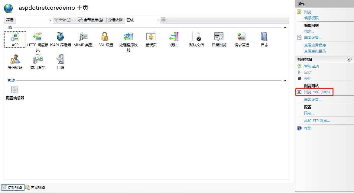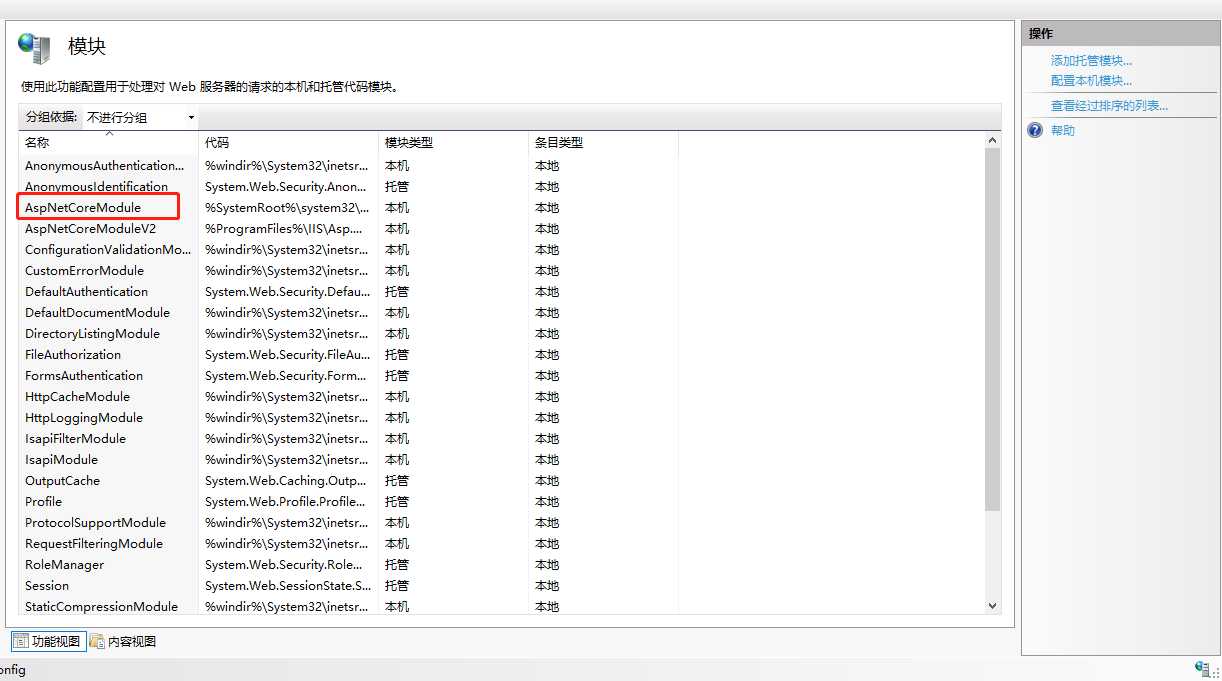 安装完成后在 iis 的模块下面可以看到