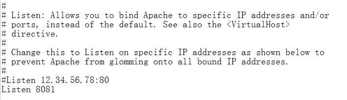修改配置的端口后 启动成功。总结 修改一共两个端口 the one 服务端口 80 修改成8081 the second 监听端口 443 直接注释掉或者修改成1023以上的端口