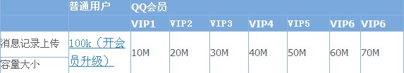 QQ消息记录上传,非会员是100KB的容量,会员上传消息记录容量根据等级不同有所不同。