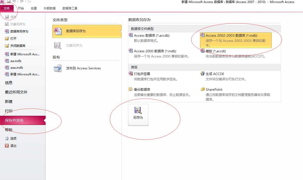 ACCESS是OFFICE套件中的一款数据库软件,在一些人群中会经常用到,但是因为ACCESS软件有发布了这么多年,有不同的版本,导致低版本的ACCESS打不开高版本产生的ACCDB后缀的数据库文件。虽然低版本的ACCESS可以安装一个补丁可以解决,但是相对来说还是非常费事。我这里利用ACCESS软件向下兼容的特点来介绍一种直接将ACCDB文件保存为MDB文件的方法。