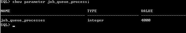 在oracle数据库中我们可以通过参数JOB_QUEUE_PROCESS设置快照进程的个数。通过以下命令我们可以了解JOB_QUEUE_PROCESS的参数信息: