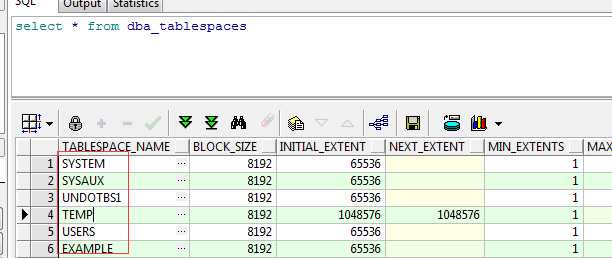 我们创建数据库时,系统会自动创建一些表空间,这些表空间说明如下: