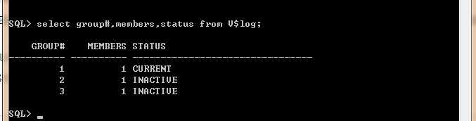 通过数据字典V$LOG可以了解系统当前正在使用哪个日志文件组,如下图: