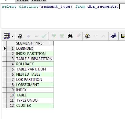select distinct(segment_type) from dba_segments;