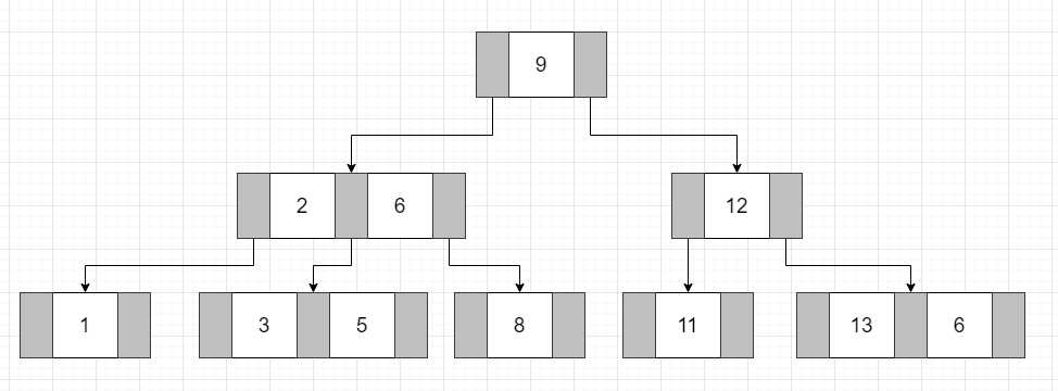 - 每个节点中的元素从小达到排序,节点当中k-1个关键字正好被k个子树包含的元素的值域分划。