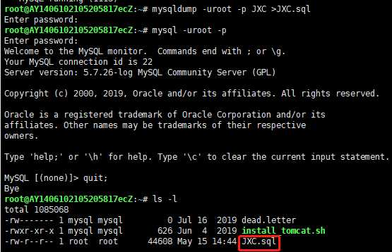 mysqldump -u用户名 -p密码 数据库名 > 数据库名.sql
