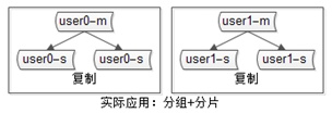 ? 4) 互联网公司数据库实际软件架构是(大数据量下):又分片,又分组(如下图)