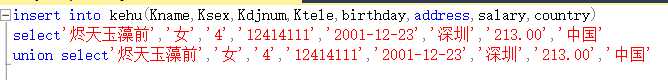 values((数据)‘‘,‘‘,‘‘(英文单引号))