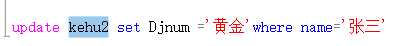 update 数据表名 set 列=‘值‘ where =‘条件‘