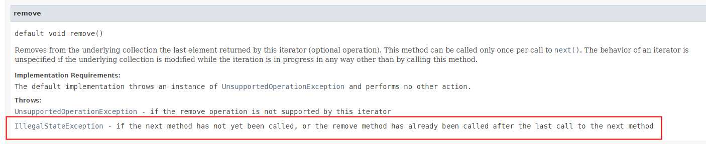 删除时出现了异常,之前每太注意过这种情况,查看remove方法api介绍