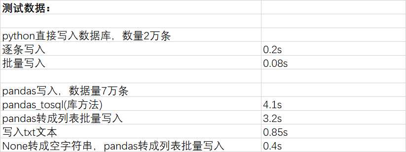 性能方面,C++写入性能较低,python 采用execute_many写入最快,另外写入不要写入None字符,写入空字符更快。