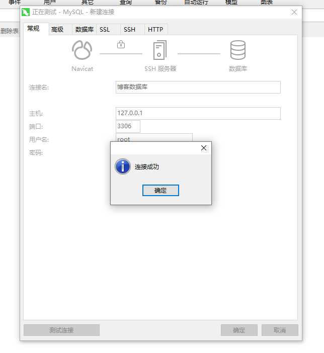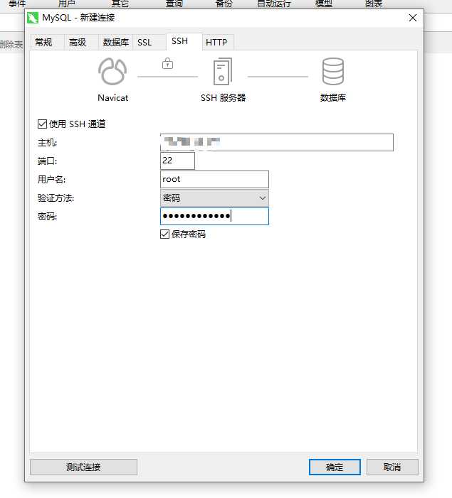 选择常规和SSH配合链接 SSH是用来连接服务器,而常规中的连接是用来连接服务器中的mysql(二者的密码是不一样 看个人当时设置的时候是什么)