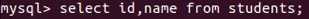 只查询表student中的id和name:select id,name from student;