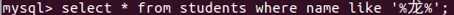 表示名字中间是龙select * from students where name like ‘黄_‘;select * from students where name like ‘黄%‘ or name like ‘%靖%‘;select * from students where id in(1,3,8);select * from students where id between 3 and 8;select * from students where id between 3 and 8 and gender=1;select * from students where hometown is null;select * from students where hometown is not null;select * from students where hometown is not null and gender=0;select count(*) from students;select max(id) from students where gender=0;select min(id) from students where isdelete=0;(返回的是1)