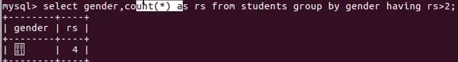 给count(*)起个别名叫rs,having是对分组后的结果集进行筛选,